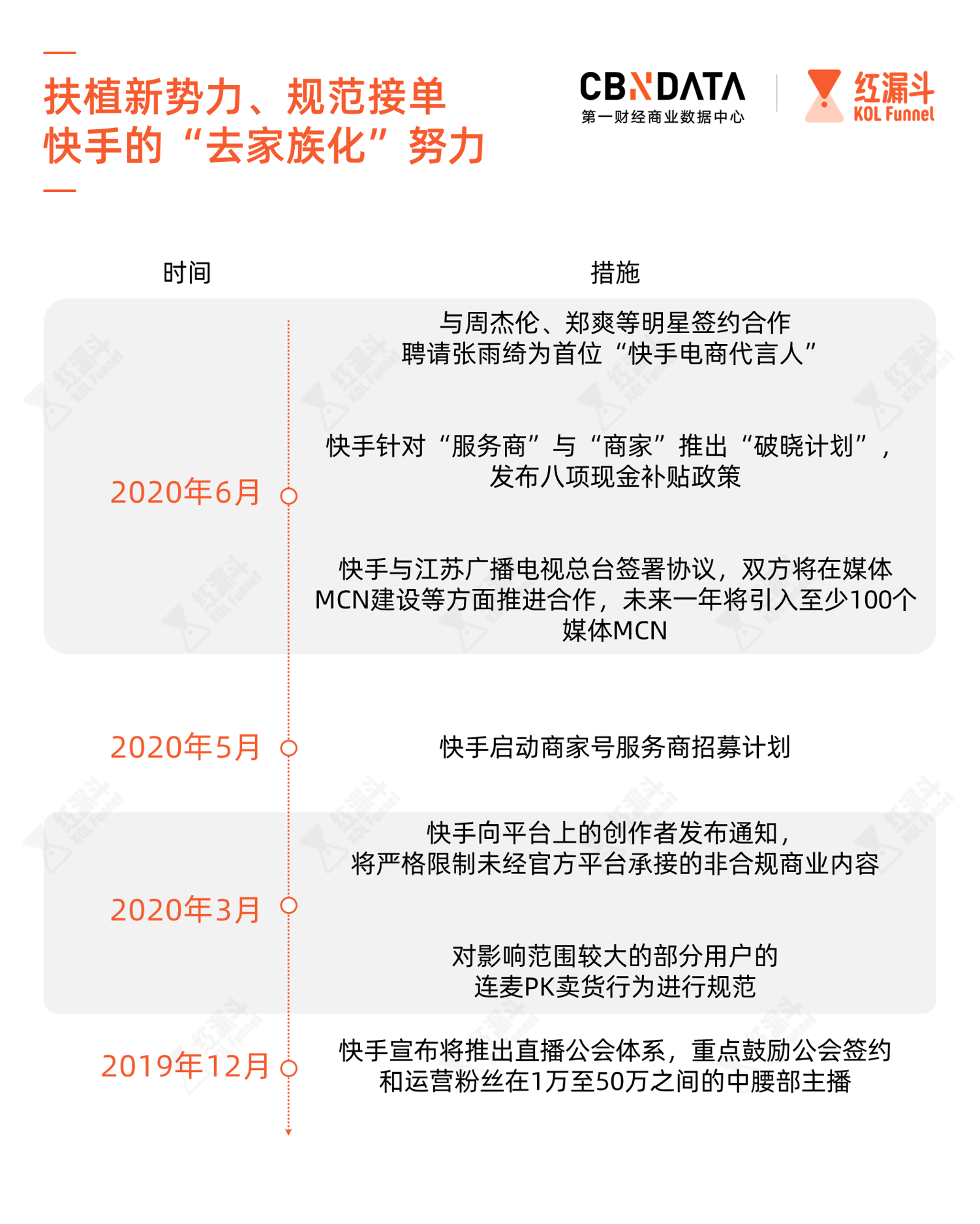 早在2018年7月,快手就推出MCN合作计划,以便更好地规范红人管理和创作。除了规范创作和商业化,快手也开始扶持新的头部势力。去年12月,快手鼓励公会签约中腰部主播。2020年前,快手开始大范围扶持商家号,引进明星、主持人等“外部力量”。