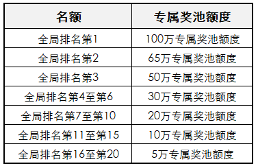 所有赛道的参与者赛马期间,可根据超级红包发放个数同时角逐赛马活动整体的全局赛马奖TOP20的排位,争夺专属权益礼包加码奖励,奖励依然为专属奖池额度(内含多个大额无门槛红包)该奖励与分赛道奖励额度可叠加,赛马结束后额度合并发放。